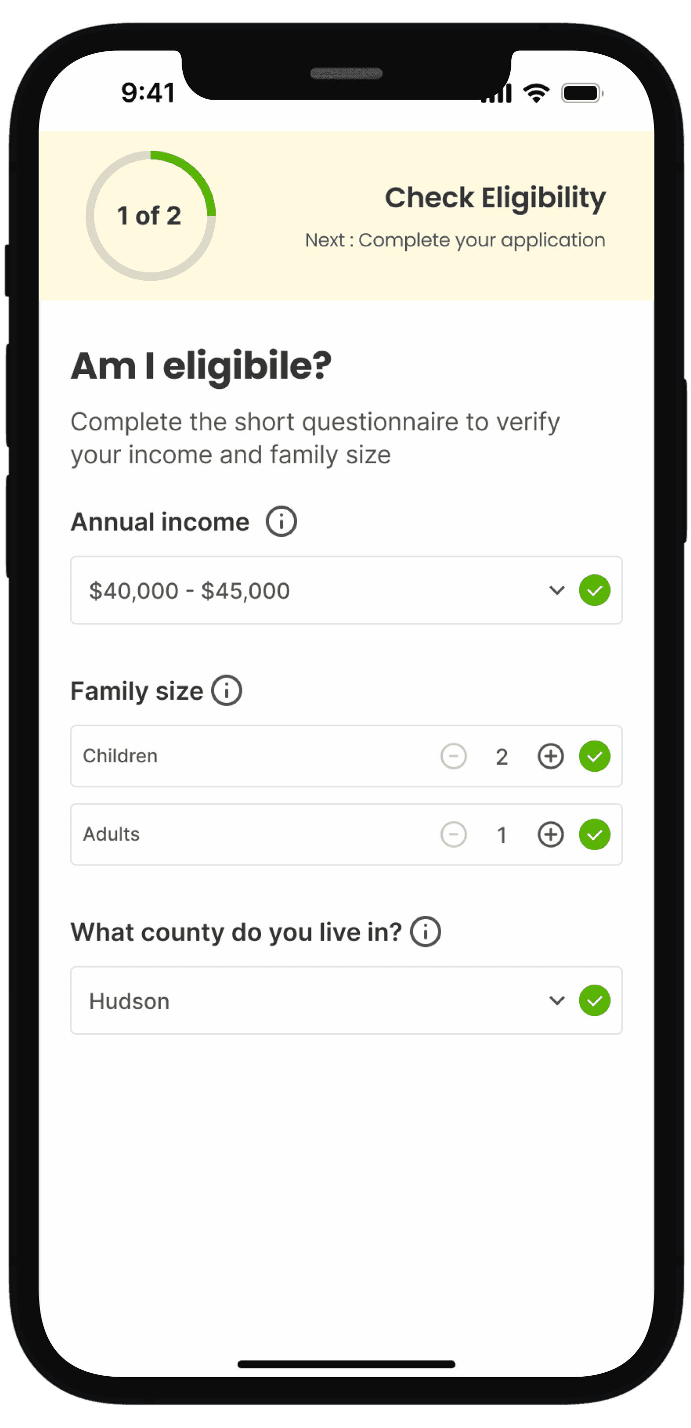 Final eligibility confirmation with clear next steps