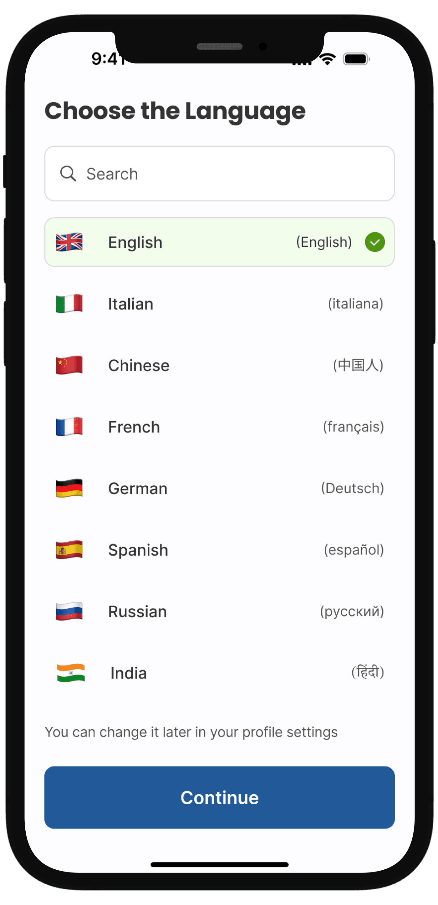 Allows parents to change language anytime from their profile settings